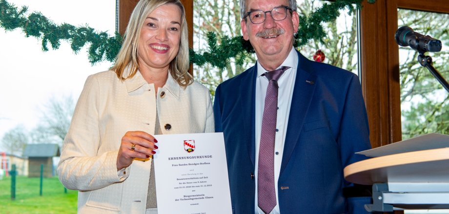 Auch Landrätin Anke Beilstein blickte auf die langjährige Zusammenarbeit zurück. Sie würdigte Steimers’ klaren Blick für das Machbare, seine Ausdauer und sein Ziel, die Verbandsgemeinde nachhaltig und zukunftsfähig aufzustellen. Zugleich zeigte sie sich überzeugt, dass Sandra Hendges-Steffens mit Erfahrung, Sachlichkeit und Bodenständigkeit diesen Weg erfolgreich fortsetzen wird.